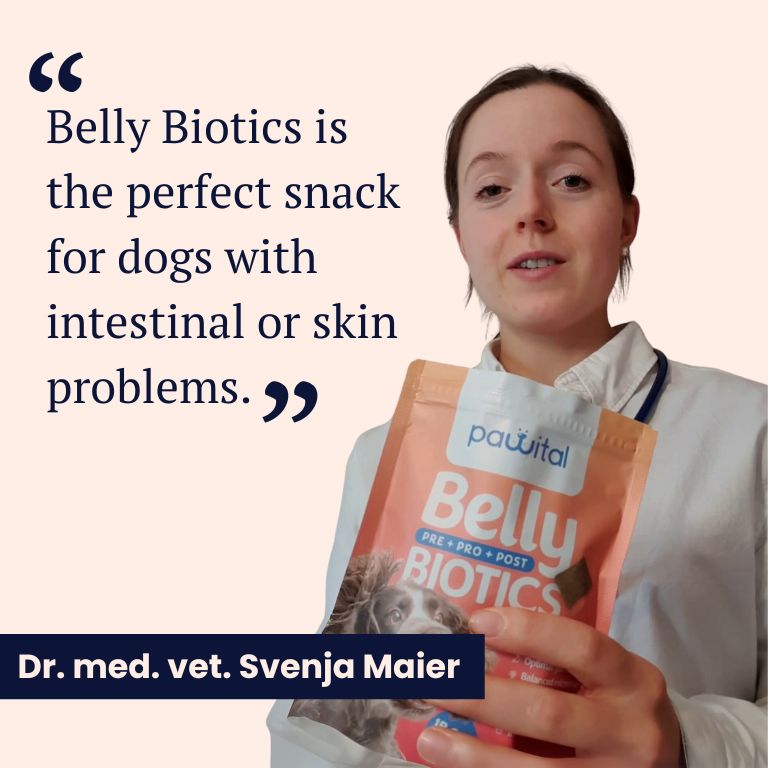 "Belly Biotics is the perfect snack for dogs with intestinal or skin problems. The product has a direct effect on skin health and the coat."