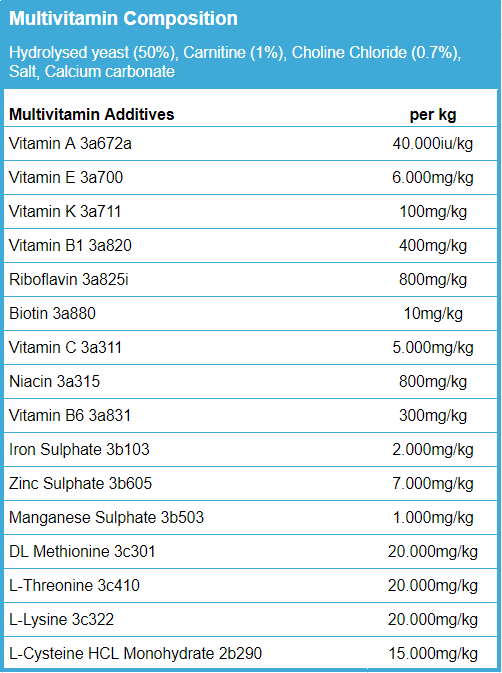 | EpiCor® Pets (Dried yeast fermentate made using Saccharomyces cerevisiae) | 8750 mg/kg |